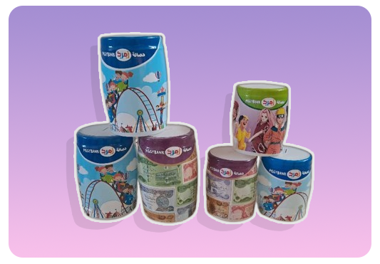 تتميز الشركة بتقديم حصالات بلاستيكية بمقاسين مختلفين لتلبية احتياجات العملاء المختلفة: